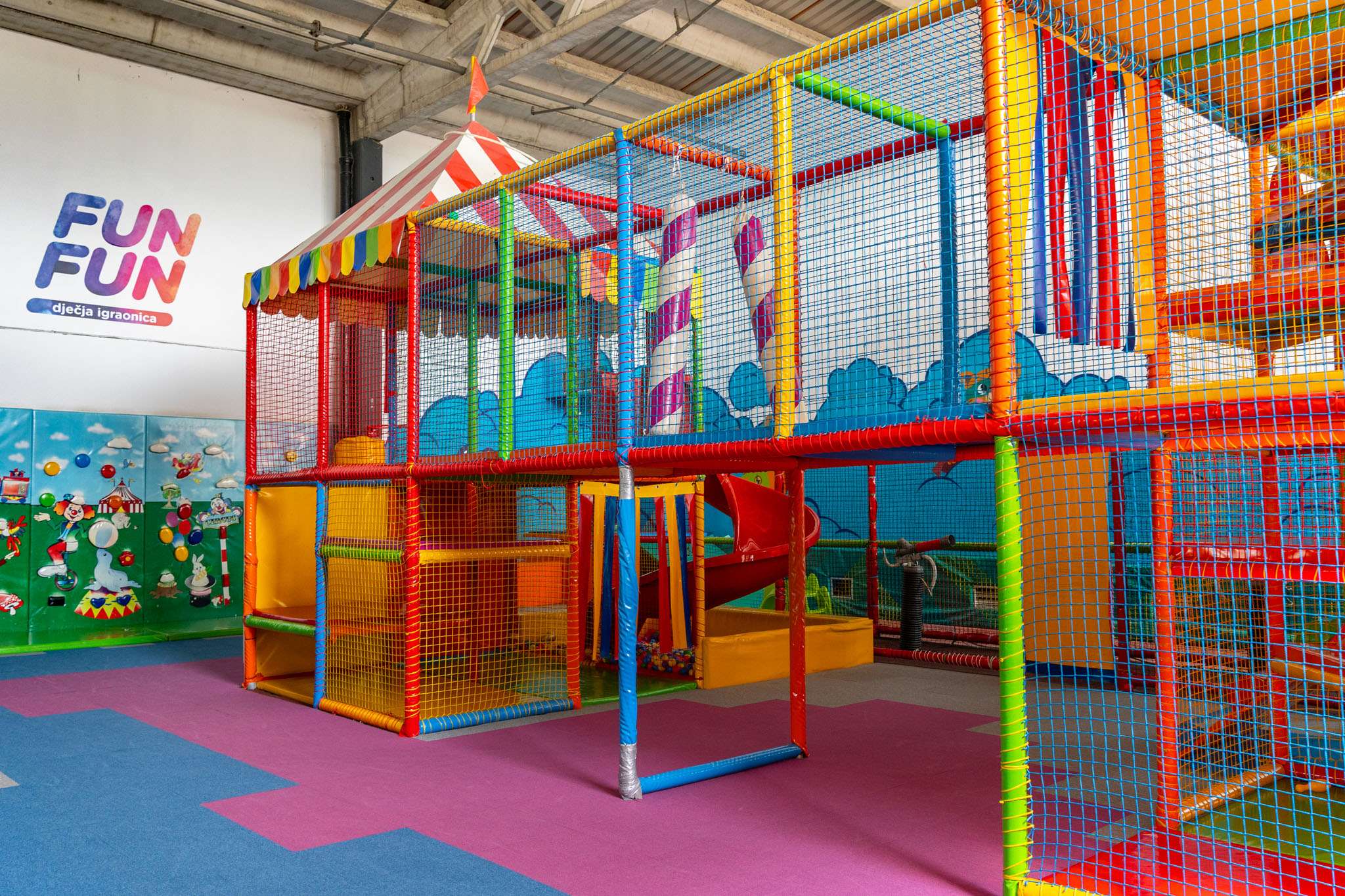 Igraonica nudi veliki broj dječijih sadržaja koji uključuju labirint na 3 kata, 2 rođendarija, trampolin, tobogane, bazen s lopticama, stjenu za penjanje, fantastični zip line (popularno zvan „leteće gaće“) i još mnogo više. Dok se djeca zabavljaju u igraonici opustite se u ugodnom ambijentu Fun Bara s pogledom na dječiju igraonicu. Igraonica Fun Fun namjenjena je djeci od 1 do 12 godina uz obaveznu pratnju za djecu do 3 godine.
